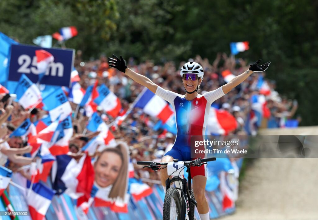 Enfin, Pauline Ferrand-Prévot apporte une belle médaille d’or à la France en VTT Cross-country. La course avait lieu à Élancourt.