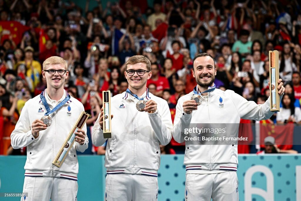 Par équipe, les 2 frères Lebrun, Alexis et Felix, accompagnés par Simon Gauzy ont obtenu la médaille de bronze.